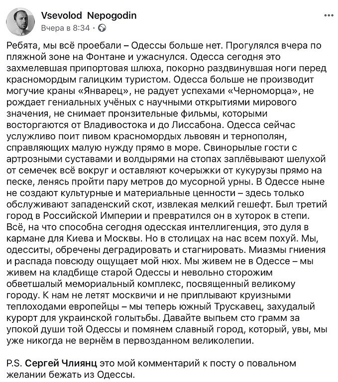 Новости Из интернета… ТОЖЕ КРИК ДУШИ ОДЕССИТА 06.03.201906.03.2019 Милана Рассказова 0 Комментариев Источник: https://ok.ru/ Post Views: 914 Facebook Twitter VKontakte Odnoklassniki Viber Telegram